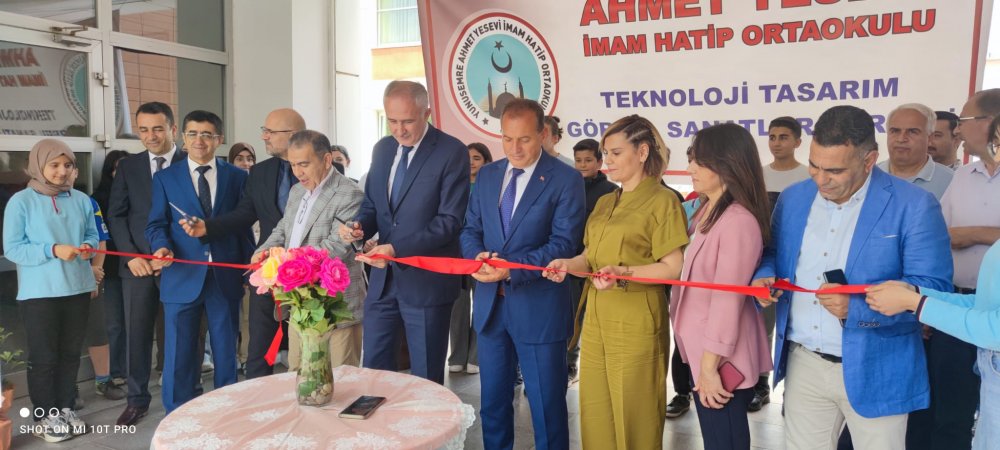 Ahmet Yesevi İmam Hatip Okulu’nda açılan sergi büyük ilgi çekti. Okul koridorlarında öğretmenlerin desteği ile öğrenciler tarafından yapılan eserler sergilendi. Teknoloji Tasarım ve Görsel Sanatlar Sergisi açılışına İl Milli Eğitim Müdürü Mustafa Dikici, Yunusemre İlçe Milli Eğitim Müdürü Yıldıray Demirtaş, Milli Eğitim Müdür Yardımcısı Muhammet Çetin, Şube Müdürü Emel Bayer, şube müdürü Levent Çimen, okul yetkilileri ile öğretmenler katıldı.