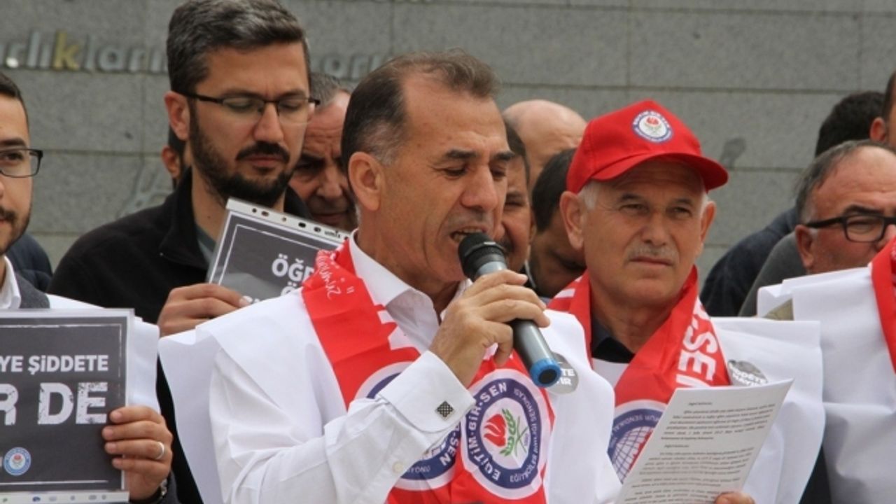 Turgutlu’da Eğitim-İş ve Eğitim-Sen sendikaları Turgutlu temsilcilikleri Turgutlu Orta Parkta düzenlenen basın açıklamasıyla İstanbul Eyüpsultan’da özel bir lisenin müdürü İbrahim Oktugan’ın, lise öğrencisi Y.K. tarafından öldürülmesini protesto etti.