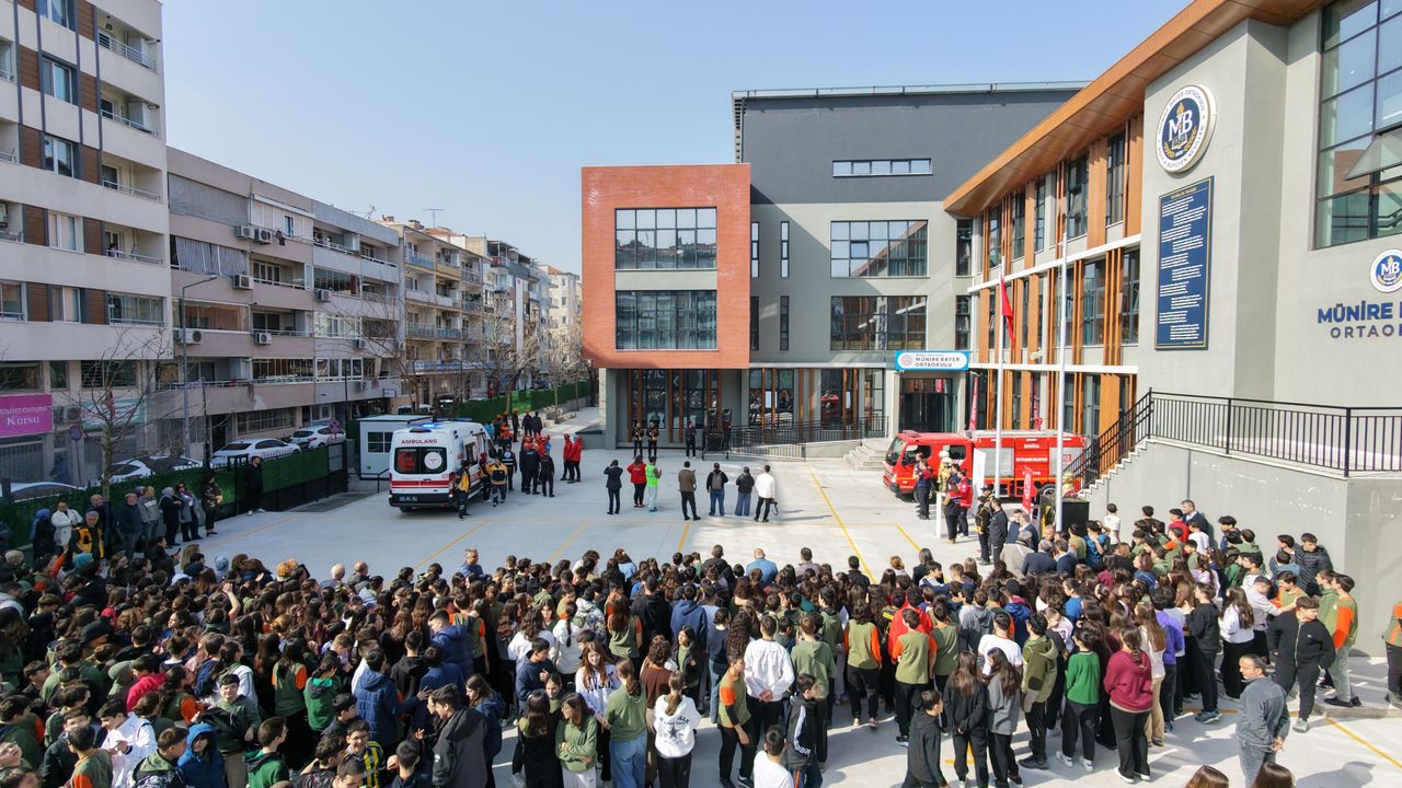 Manisa’da Deprem Haftası kapsamında Manisa İl Afet ve Acil Durum (AFAD) Müdürlüğü tarafından Şehzadeler ilçesinde Münire Bayer Ortaokulu’nda deprem tatbikatı gerçekleştirildi.