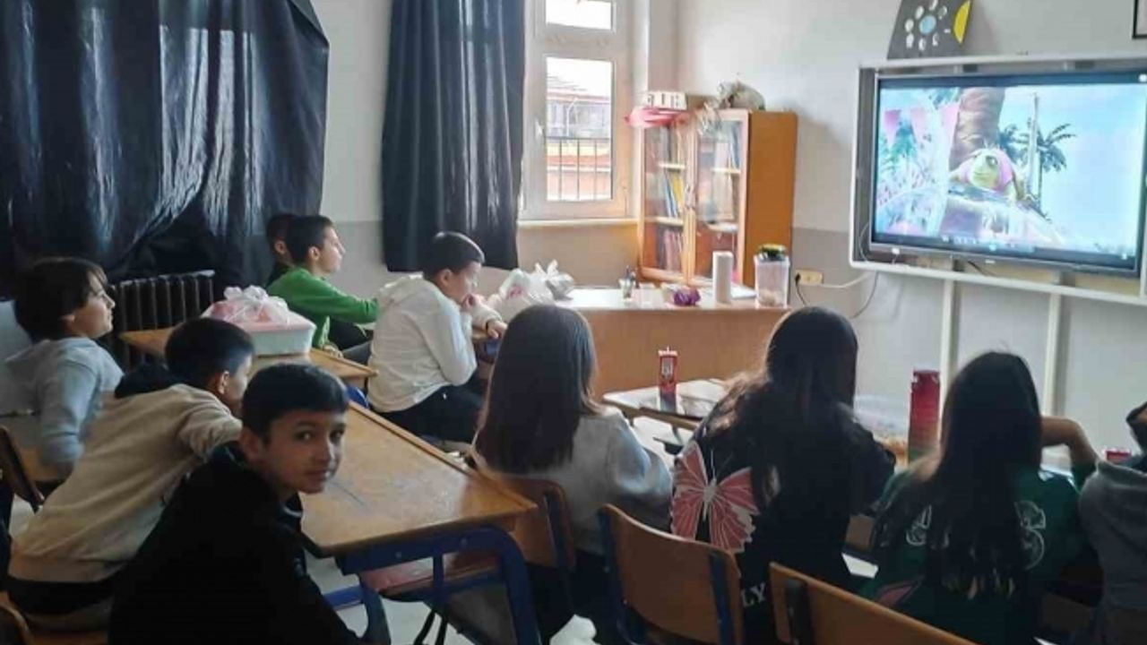 Milli Bakanlığı’nın ilk dönemin son haftasını etkinlik haftası olarak geçirilmesi talimatı üzerine Manisa’nın Sarıgöl ilçesindeki Emcelli Ortaokulu’nda öğrencilere sinema etkinliği düzenlendi.