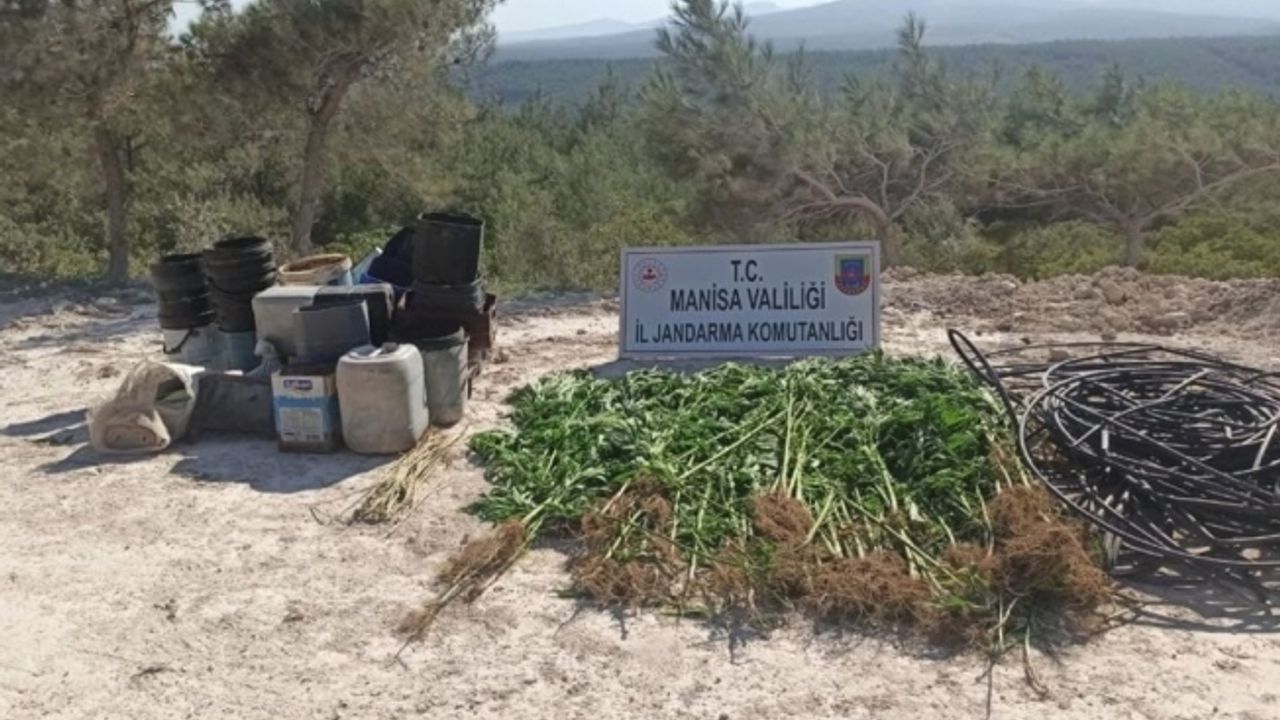 Manisa’nın Saruhanlı ilçesinde ormanlık alanda saksılar içinde 380 kök kenevir bitkisi yetiştiren şahıs, kenevirleri sularken jandarma tarafından suçüstü yakalandı.