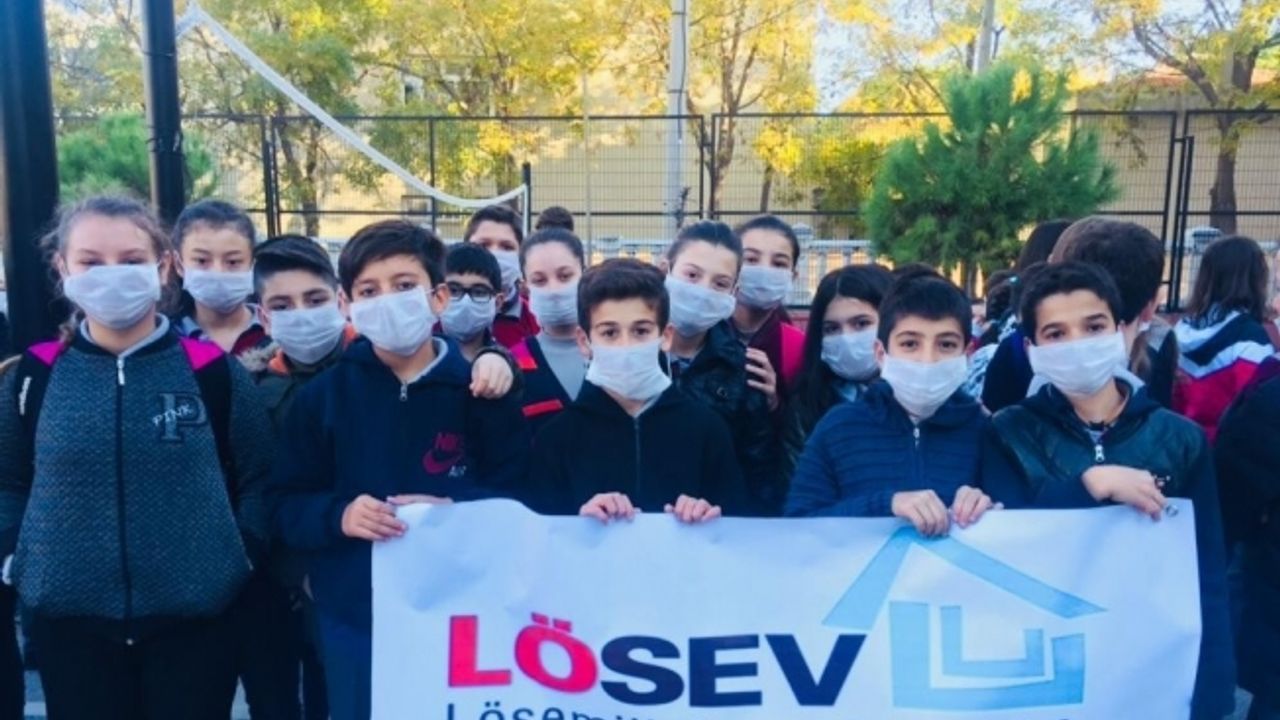 Manisa’nın Salihli ilçesindeki Altınordu Ortaokulu öğrencileri 2-8 Kasım Lösemi haftasında sosyal sorumluluk projesi kapsamında LÖSEV’e maske takarak destek verdi.