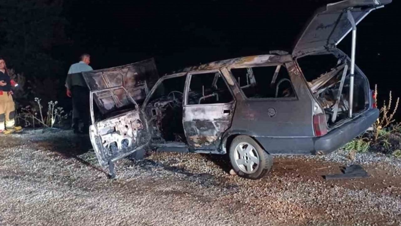 Manisa’nın Alaşehir ilçesinde sürücüsünün farlarını açtığı otomobil seyir halindeyken birden alev alarak yandı. Yangın ormanlık alana sıçramadan söndürüldü.