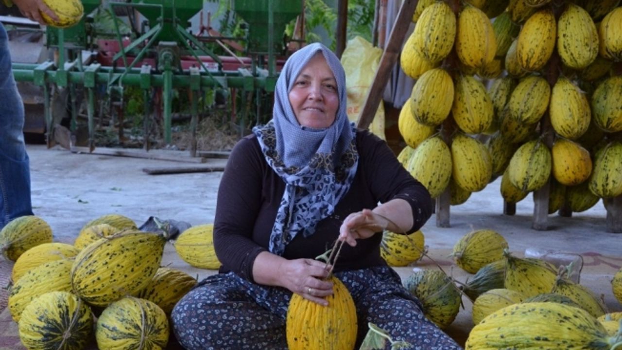 Manisa’nın Kırkağaç ilçesinde yetiştirilen deseni, kokusu, tadı ve uzun dayanmasıyla ünlenerek coğrafi işaret alan Kırkağaç kavunları, kış aylarında da tüketilmek üzere askılara alınmaya başladı.
