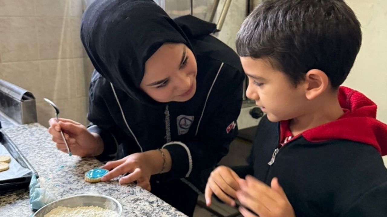 Manisa’nın Şehzadeler ilçesindeki Gazi İlkokulunda eğitim gören özel öğrenciler, İsmet İnönü Mesleki ve Teknik Anadolu Lisesi Yiyecek İçecek Bölümünde okuyan ablalarıyla okulun Yiyecek Atölyesinde hamur açıp kurabiye yaptı.