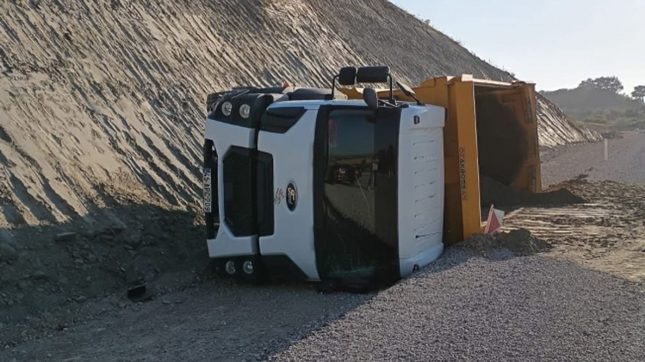 Manisa’nın Gördes ilçesinde yol kenarına park edilen kamyon kendi kendine hareket edip yol kenarına çarparak devrildi. Kazada herhangi can kaybı olmazken kamyonda maddi hasar meydana geldi.
