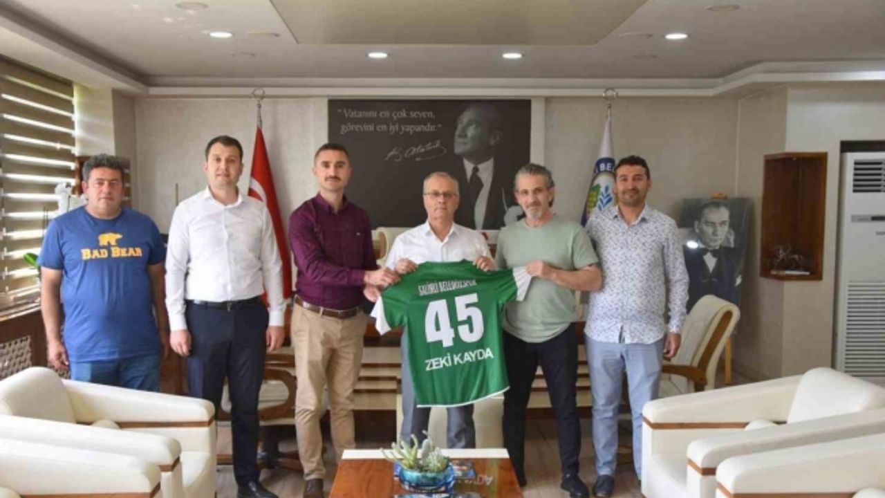 Yönetim kurulu üyeleri Hakan Yavuz, Talat Bal, Mehmet Şakir Çiçek ve Bahtiyar Zaman’ın da yer aldığı ziyarette yeni Başkan Aysu, Başkan Kayda’ya isminin yazılı olduğu 45 numaralı yeşil-beyaz formayı hediye etti.