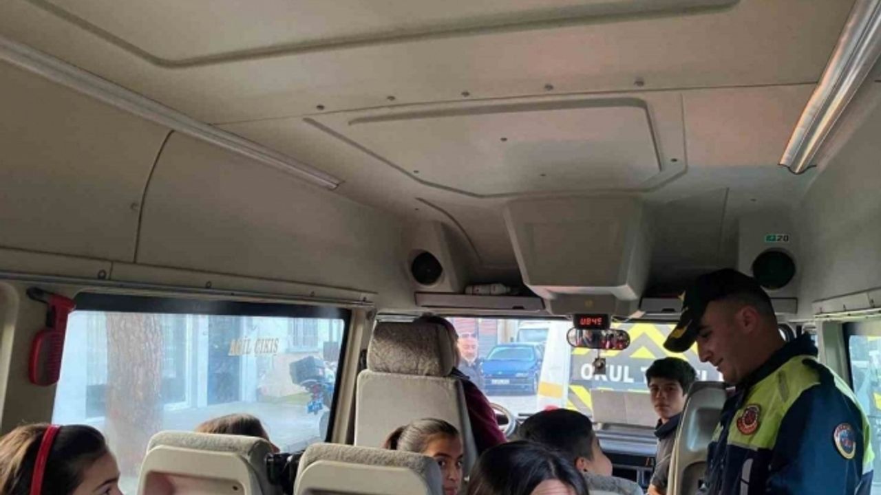 Jandarma ekipleri, durdurduğu servis minibüslerinde yangın tüpü başta olmak üzere evrak, araç ve emniyet kemeri kontrolü yaparak servis şoförlerini trafik kurallarına uymaları ve öğrencilerin can güvenliğini sağlamaları konusunda uyardı.