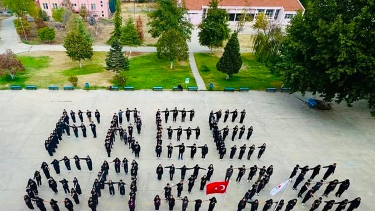 Milli Eğitim Bakanlığı tarafından ülke genelinde yürütülen "Filistin Farkındalık Etkinlikleri" kapsamında Okul Müdürü Zehra Vildan Gözütok ve Beden Eğitimi Öğretmeni Nurullah Akyıldız öncülüğünde gerçekleştirilen etkinlikte öğrenciler, okul bahçesinde bir araya gelerek bedenleriyle İngilizce olarak "Free Gazze" (Özgür Gazze) yazısı oluşturdu.