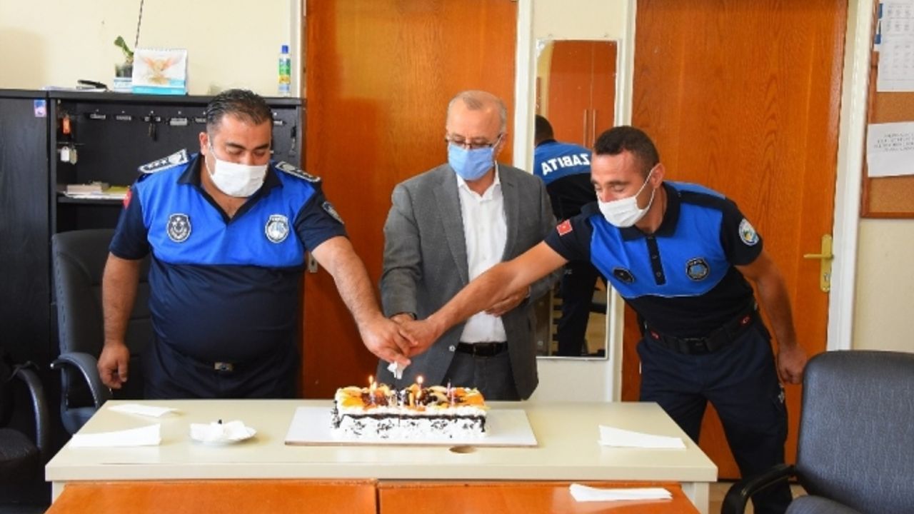 Başkan Zeki Kayda, zabıta haftası nedeniyle zabıta müdürlüğü personeliyle pasta kesti.