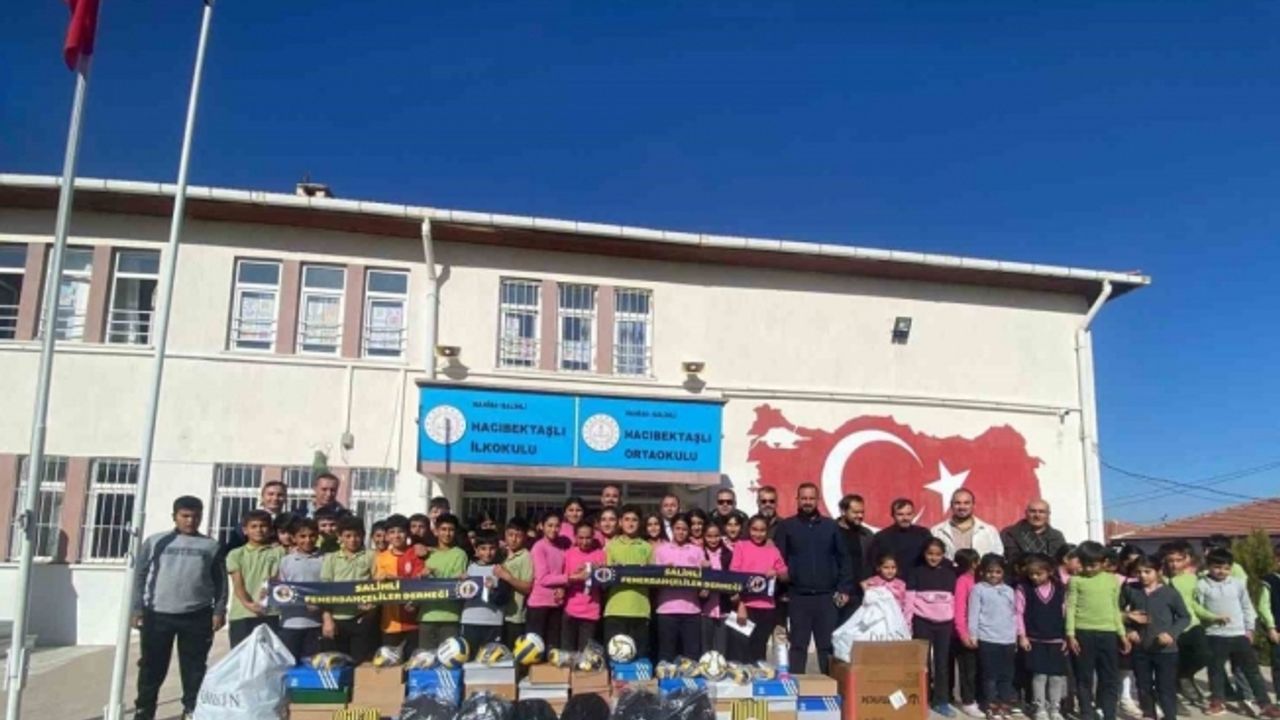 Manisa’nın Salihli ilçesindeki Fenerbahçeliler Derneği, ilçedeki Hacıbektaşlı İlkokulu ve Ortaokuluna spor malzemesi desteğinde bulundu.