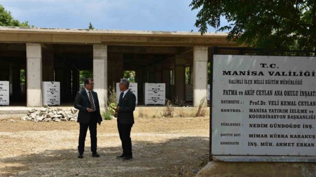 Salihli Ticaret ve Sanayi İlköğretim Okulu Bahçesine hayırsever tarafından yüzde 51’i yaptırılan Aytuğ-Batu Demir Anaokulu ve Fahriye Hanım İlkokulu bahçesine hayırsever tarafından yapımı devam eden Fatma-Akif Ceylan Anaokulu inşaatı devam ediyor. Salihli Kaymakamı Ali Güldoğan, inşaatı devam eden anaokullarında incelemelerde bulunup, inşaat çalışmaları hakkında yetkililerinden bilgi aldı.