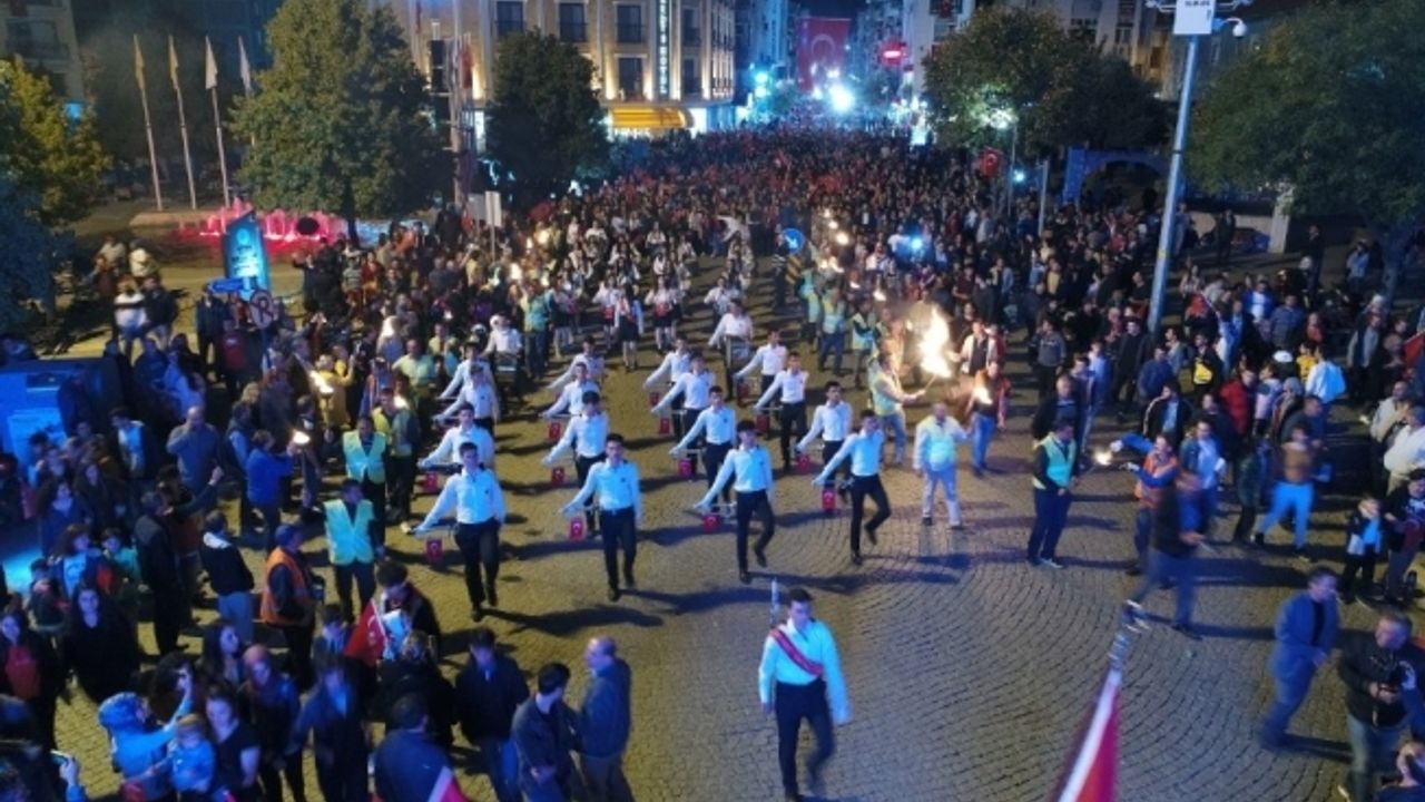 Manisa’nın Salihli ilçesinde Cumhuriyet’in kuruluşunun 96’ıncı yıl dönümünü etkinlikleri kapsamında düzenlenen fener alayı yürüyüşü Cumhuriyet’in kurulduğu tarih olan 19.23’de başladı. Fener alayına yaklaşık 10 bin kişi katılırken, Ölürüm Türkiyem türküsü eşliğinde yürüyen gençler, ellerinde fenerlerle geceyi aydınlattı.