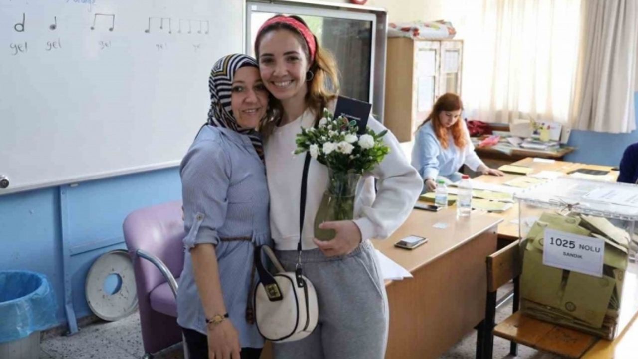 Seçmenlerin bulunmadığı bir anda sınıfa giren Ayşegül Karaarslan annesine sarılarak Anneler Gününü kutladı.