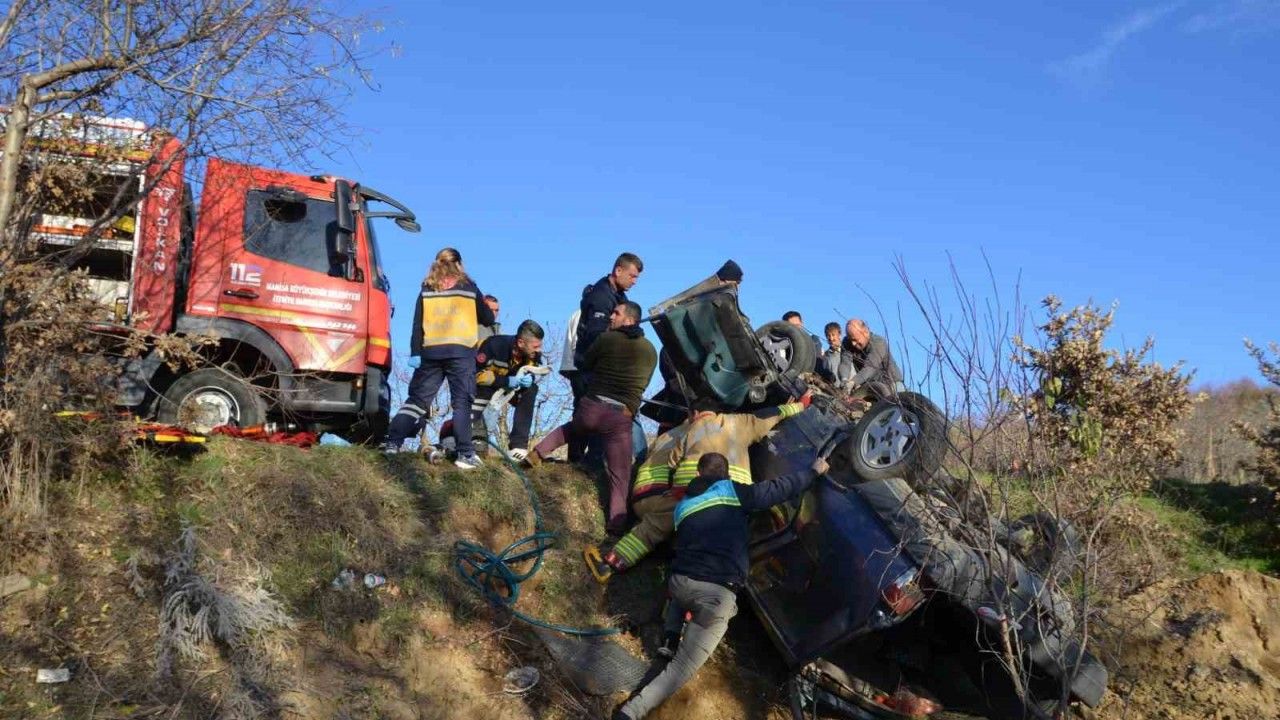 Manisa’nın Demirci ilçesinde kontrolden çıkan otomobilin şarampole devrildiği kazada sürücü yaralandı.