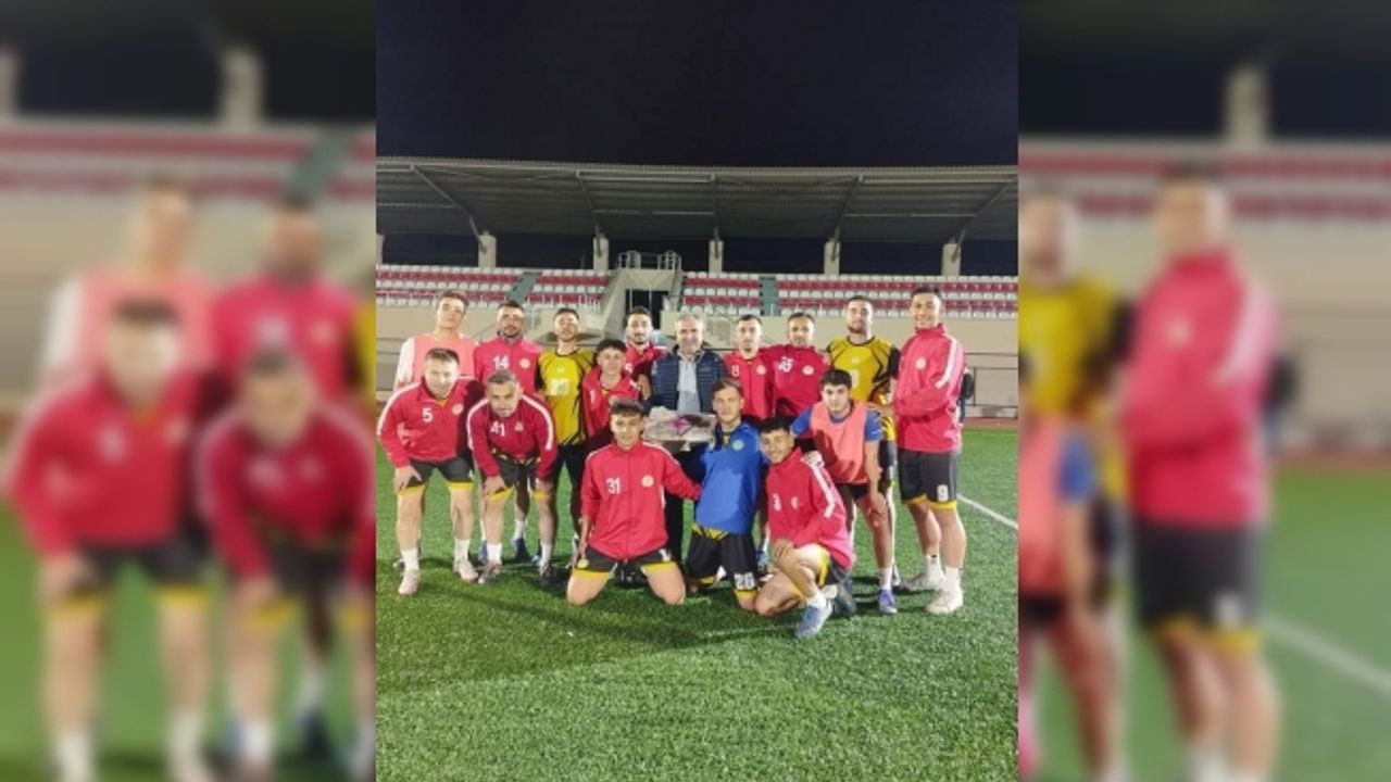 Sarıgöl Belediyespor’un 4 Eylül Stadyumundaki gece antrenmanını bir tepsi baklava ile ziyaret eden Sarıgöl Beldiyesi AK Partili Belediye Meclis üyesi Güngör Şahin, takım oyuncularını başarılı oyunlarından dolayı tebrik etti.