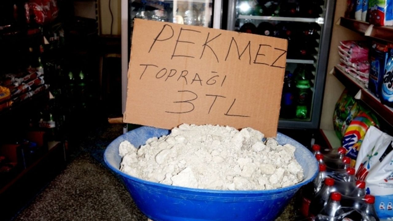 Sarıgöl ve çevresinde pekmez yapımında kullanılan pekmez toprağının kilosu 3 TL’den satılmaya başlandı. Pekmez yapımının başlamasıyla birlikte pekmez toprağı satışları da arttı.