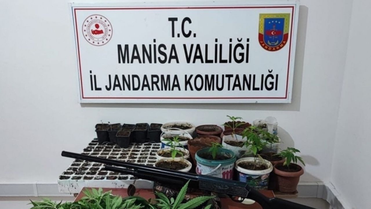 Saruhanlı İlçe Jandarma Komutanlığı ekiplerince yapılan istihbarat çalışmaları sonucu Z.U. isimli şahsın ikametgahında ve eklentilerine operasyon düzenlendi. Operasyonda yapılan aramada 403 kök kenevir bitkisi, 1 adet ruhsatsız av tüfeği, 30 adet av tüfeği fişeği, 1 adet ruhsatsız kuru sıkı tabanca, 50 adet kuru sıkı tabanca fişeği, 48 adet 7.65 mm çapında fişek ve 2 adet 9 mm çapında fişek ele geçirildi. Z.U. isimli şahıs gözaltına alındı.