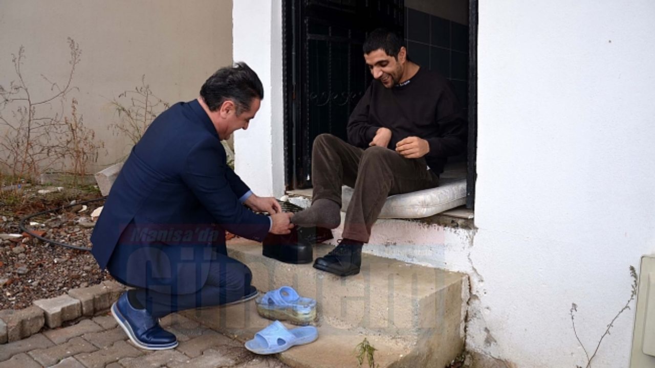 Manisa Vali Yardımcısı Mevlüt Özmen, Sedat’ın ilk ayakkabısın vermek için evinde ziyaret etti. Hayallerindeki ayakkabıya kavuşan Sedat’ın mutluluğu gözlerinden okundu. Engelli Sedat’a ayakkabısını giydiren Manisa Vali Yardımcısı Mevlüt Özmen, ters olan elinin düzeltileceği müjdesini verdi. Mevlüt Özmen, “Sedat Manisa’nın tanınan simalarından, herkesin çarşıda pazarda gördüğü bir insan. Adeta ilin maskotu gibi olmuş. Biz de bir gün karşılaştığımızda Sedat’ın elinin ve ayağının ters olduğunu fark ettik. Bu zamana kadar bir ameliyat da olmamış. Yaz kış ayağında terliklerle dolaşıyordu ve ayağı da tersti. Doktorlarla konuştuğumuzda bunun düzelebileceğini öğrendik. Doktor araştırdık, Sedat da çok sevindi. Hayırseverlerimiz devreye girdi, Sedat’ın ameliyatı için gerekli olan para toplandı ve Ankara’da ameliyat edildi. Kolay bir ameliyat olmadı, Sedat’ın ters olan ayağının düzelebilmesi için 14 kemiği kırıldı, uzun bir ameliyat oldu. Manisalılar çok destek oldular, 75 bin liralık tutan masraflar karşılandı. Ağustos ayında ameliyatını oldu, yaraları düzeldi. Şimdi de onun için yaptırdığımız özel ayakkabıyı kendisine getirdik. Hayatında ilk kez 30 yıl sonra ayakkabı giydi. Ayağı düz şeklini aldı. Bundan sonra da yavaş yavaş yürümeye başlayacak. 2 yaşında geçirdiği bir ateşli hastalıktan sonra bu hale gelmiş. 30 yıl sonraki ilk ayakkabı sevincine ortak olmak tarif edilemez bir duygu. Ayağı artık normal ayak şeklini aldı. Sedat’a özel bir ortopedik ayakkabı yaptırdık. Bu da ilk ayakkabısı oldu. Bundan sonraki hedefimiz de ters olan elini düzeltmek. Elini de düzelttiğimizde Sedat’ın yüzü daha çok gülecek” diye konuştu.