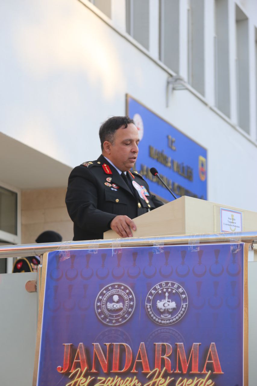 Jandarma teşkilatı kurulduğu günden bugüne kadar her zaman halkımızın yanında ve huzurun sağlanması ve muhafazasında en yaygın teşkilat olarak dikkatleri çektiğini kaydeden Tuğgeneral Şen, “Kanun ordusu, jandarma teşkilatı, disiplinli, üstün vazife ve görev anlayışı, eğitimli personeli, cumhuriyet değerlerine, Atatürk ilke ve inkılâplarına gönülden bağlı yapısıyla ülkemizin köklü kurumlarından birisidir. İnanıyorum ki, dün olduğu gibi bugün de yarın da yüce milletimizin destek ve dualarını arkasına alan teşkilatımız, bu aziz milletin hizmetinde olmaya, bu şanlı bayrağın çeşmesi altında kıyamete kadar şerefle hizmet etmeye devam edecektir. Jandarma teşkilatı vazifesini inşa ederken, hukukun üstünlüğünü, insan haklarını ve vatandaş memnuniyetini önceleyen bir anlayış taşımaktadır. Sayın Valimizin liderliğinde Cumhuriyet Başsavcılığı'nın koordinesinde kardeş teşkilatımız olan emniyet teşkilatı ile omuz omuza Manisa ili ve ilçelerinde emniyet ve asayişin sağlanmasında ve el ele, gönül gönüle, iş birliği içerisinde çalışmaktayız. Bundan sonra da vazifemizi en iyi şekilde yerine getirme azim ve kararlılığında olacağız. Başta Ulu Önder Atatürk ve silah arkadaşları olmak üzere vatanımızın muhafazası, kutsal değerlerimizin korunması için canlarını feda eden tüm şehitlerimize Allah'tan rahmet ve gazilerimize sıhhat ve afiyet dilerken, şehitlerimiz sizin ve ebediyete intihal eden tüm gazilerimizin aziz hatıraları önünde saygıyla eğiliyorum. Ruhları şad, mekânları cennet olsun. Onların bizlere emaneti olan kıymetli şehit ve gazi ailelerini hürmetlerimi arz ediyorum.” Dedi.