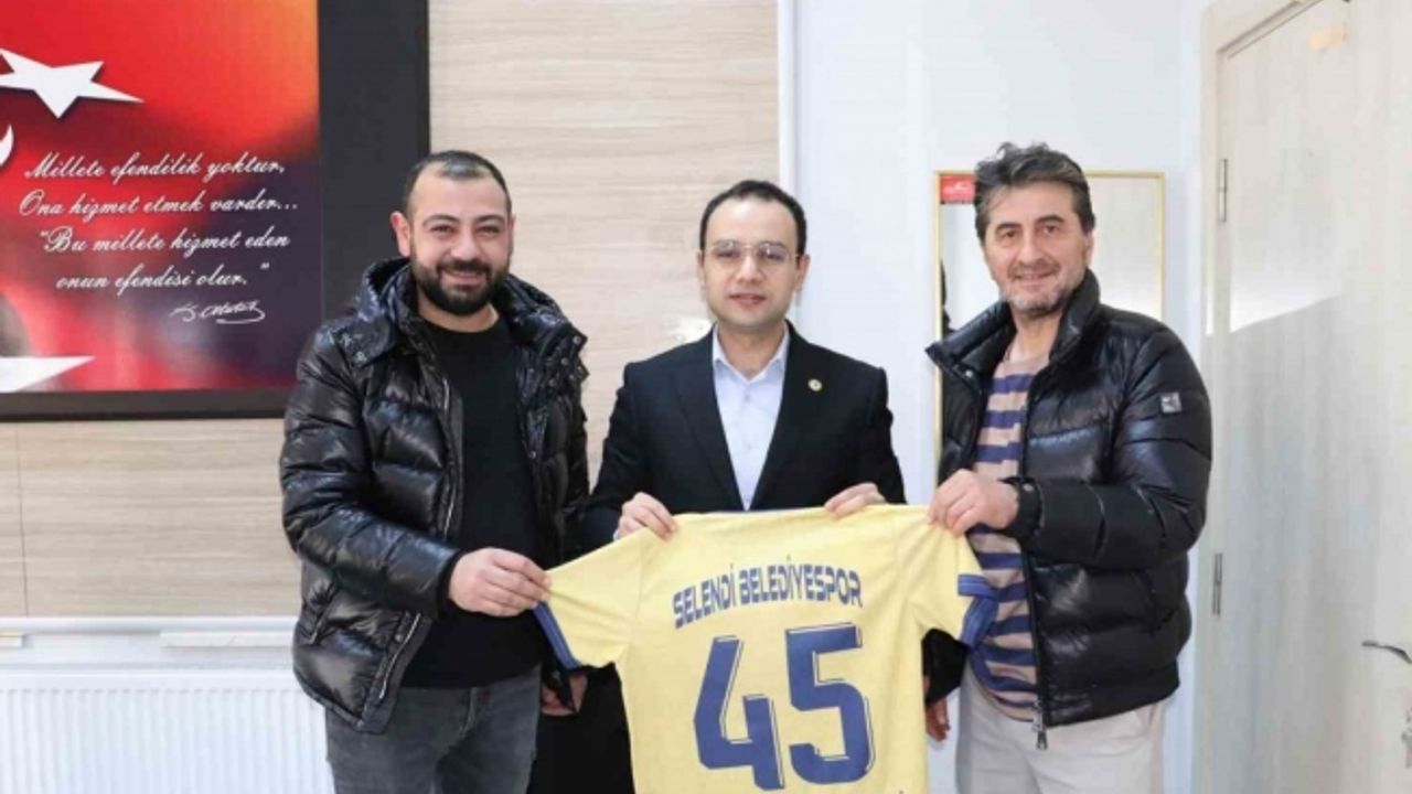 Manisa Süper Amatör Lig takımlarından Selendi Belediyespor Başkanı Sedat Kaya ve yöneticileri Kaymakam Tarık Safa Kahveci’yi makamında ziyaret ederek üzerinde isminin yazdığı 45 numaralı formayı hediye etti.