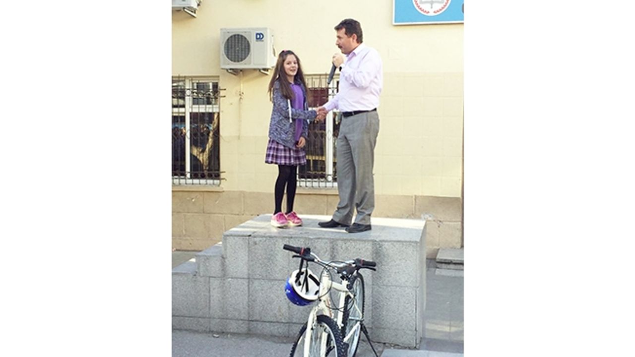 Manisa’nın Şehzadeler ilçesindeki Ali Rıza Çevik İlkokulu 5/D sınıfında öğrenim gören İpek Okur adlı öğrenci, code.org’da 4 aşamayı tam olarak tamamlayarak sertifikalarını almayı başardı. Öğrenciye, başarısı nedeniyle bisiklet hediye edildi. Okul bahçesinde düzenlenen törende Okul Müdürü Ali Emülün ve Bilişim Dersi Öğretmeni Öznur Katıtaş, 5. Sınıf öğrencisi İpek Okur’u tebrik ederek bisikletini takdim etti.
