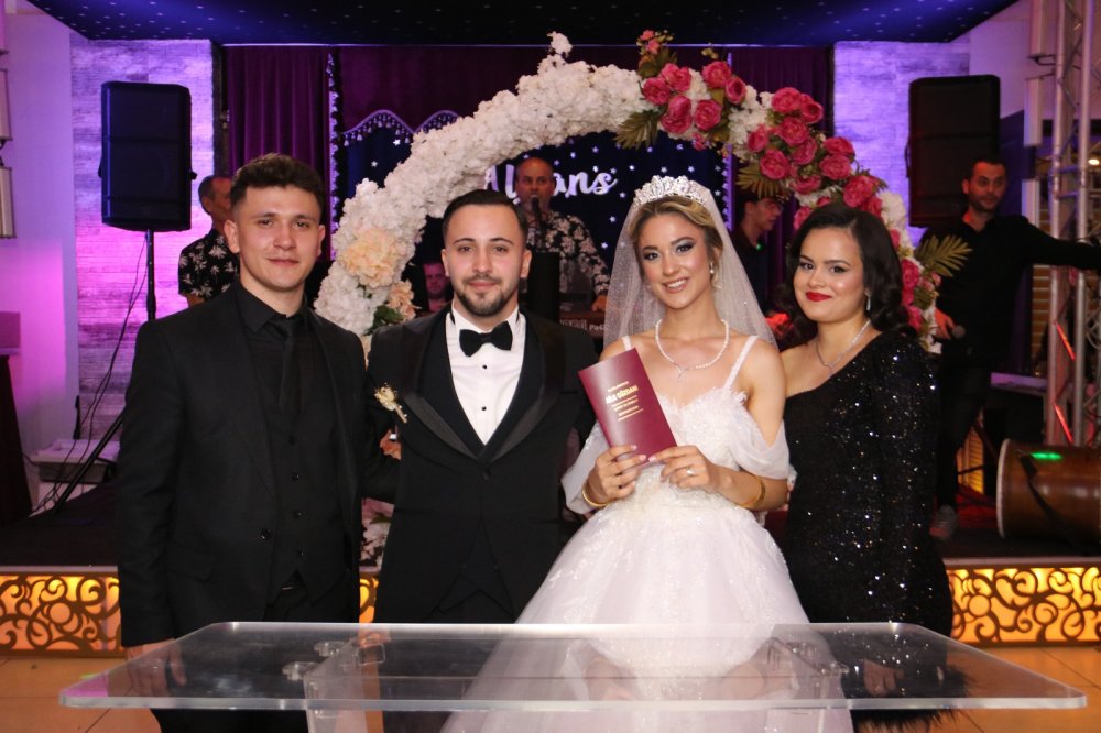 Manisa'nın Şehzadeler İlçesinde Alyans Düğün Salonunda gerçekleştirilen düğün törenine her iki ailenin de akrabaları ile dostları ve arkadaşları katıldı.