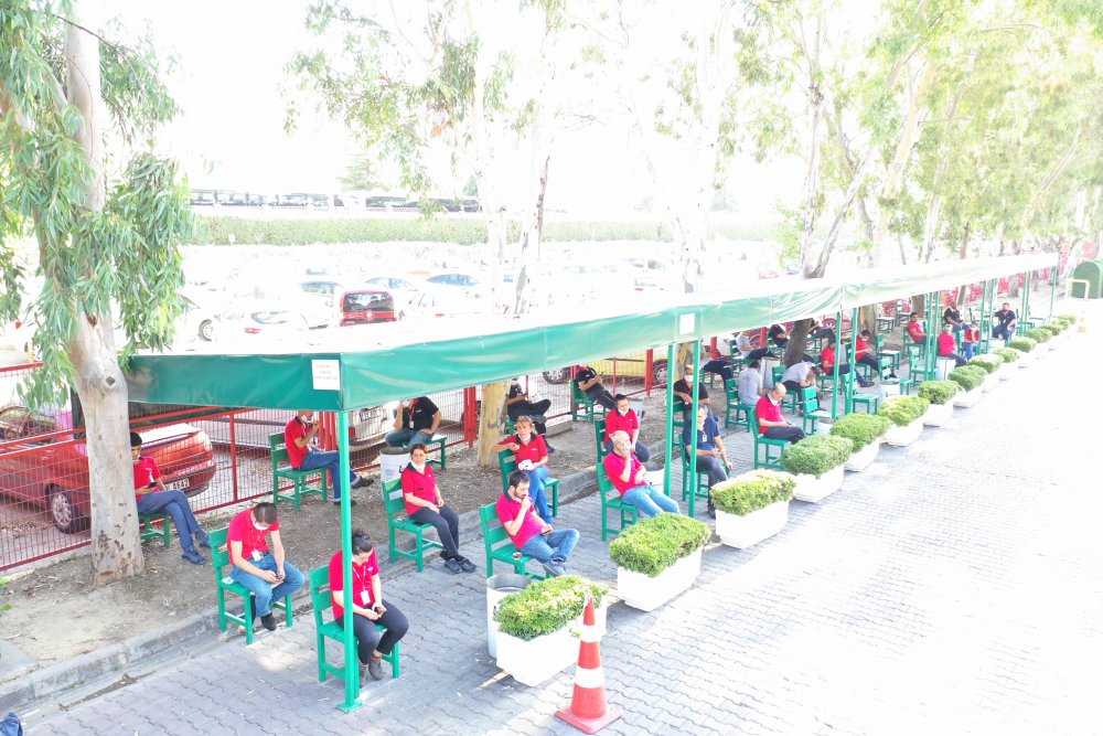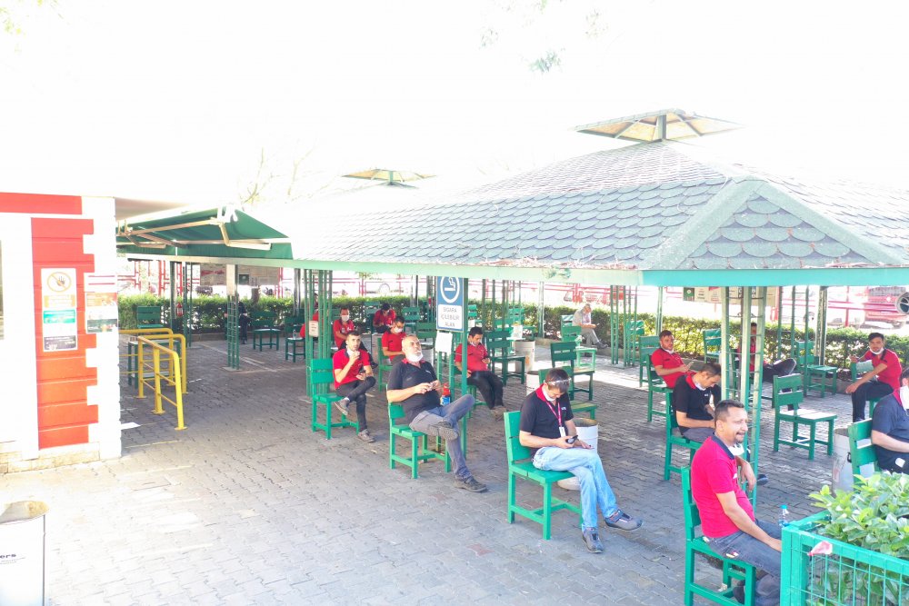 Ayrıca fabrikada gün içinde kontroller de sürekli devam ediyor. Mola zamanlarında bahçenin üzerinde gezen drone ile personelin sosyal mesafe gibi kurallara uyup uymadığı tespit ediliyor. Ayrıca kamelyalardaki oturma alanları da sosyal mesafe kuralına göre yerleştirilmiş durumda ve yerlerine çakılı.