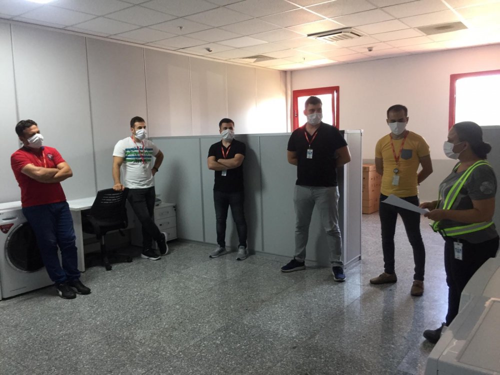 • Personelimizin dikkatini bu konuya çekmek ve farkındalık oluşturmak için virüsün semptomlarına ilişkin afişler astık, olabildiğince kalabalık ortamlardan uzak durulması, sosyal mesafe kurallarına uyulması konusunda eğitimler verdik. Eğitimlerimiz, portal yayınlarımız, e-posta, digital ekranlar ve toplantılar aracılığı ile sağlanmaya devam ediyor.
