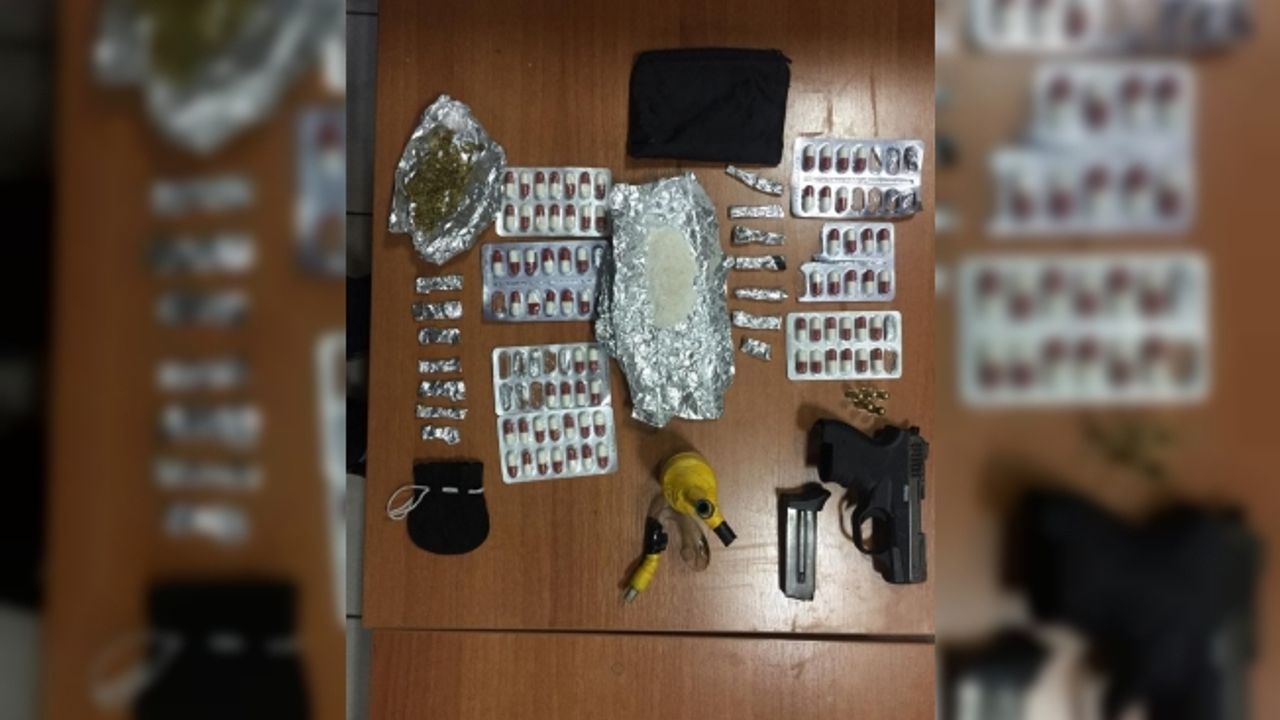 Yapılan aramalarda, 150 adet sentetik ecza, 3 parça halinde 30 gram metamfetamin maddesi, 5 gram esrar maddesi, 2 adet ruhsatsız tabanca ve 13 adet fişek ile uyuşturucu madde paketlemede kullanılan malzemeler ve uyuşturucu kullanımına yarayan aparatlar ele geçirildi.