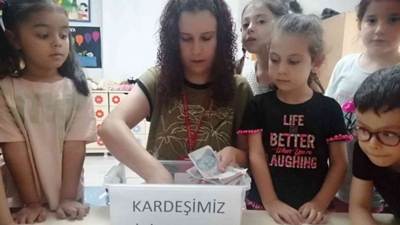 Minik öğrencilerin harçlıklarından biriktirdikleri 4 bin 910 TL Kaan Efe Bebek için bağış oldu. Kumbaralardan çıkan para okul yönetimi ve okul aile birliği ile Kaan Efe’nin valilik tarafından alınan izinle açılan banka yardım hesabına yatırıldı.