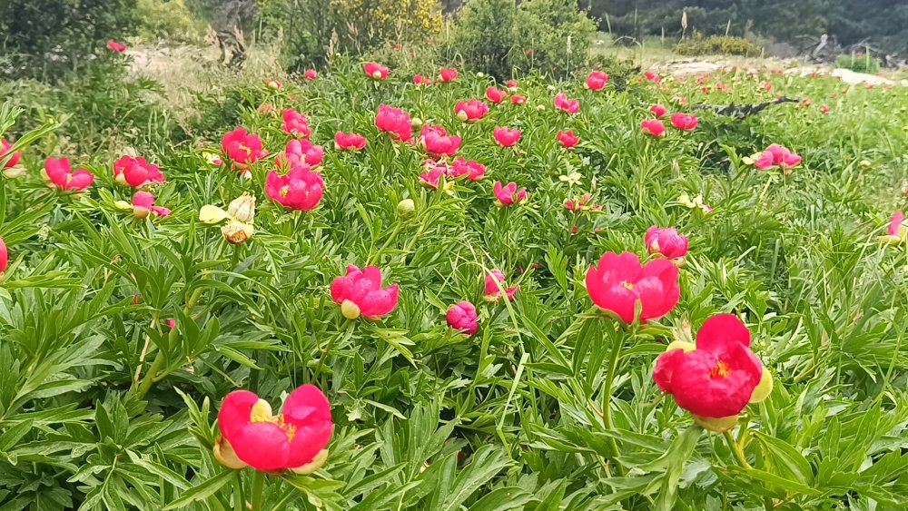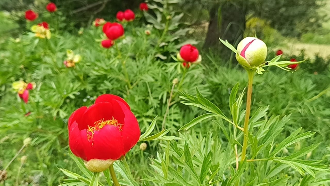 Spil Dağı’nda çan çeşirtli renklerdeki endemik bitkilerin arasından kan kırmızısı rengiyle kendisini gösteren ve gül gibi katlı yapraklarıyla kendisine hayran bırakan Şakayıklar, laleler gibi 10 gün çiçek açıyor.