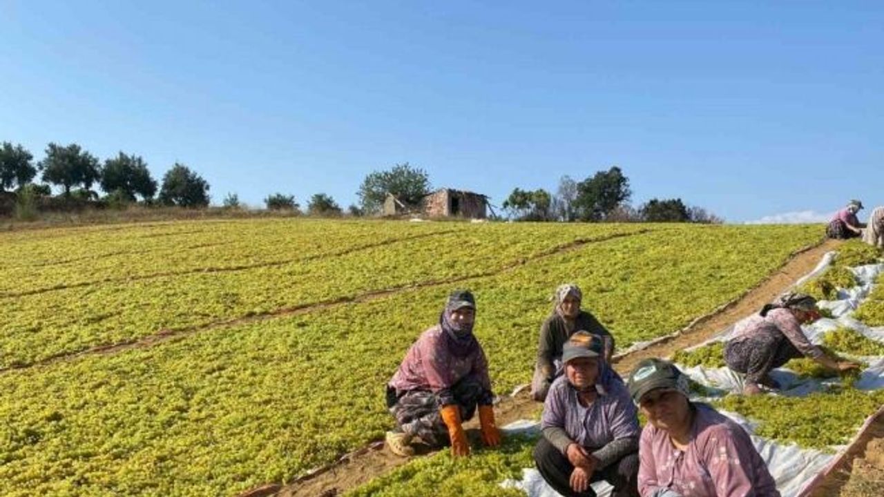 Şaraplık üzüm fiyatlarının 29 liradan 15 liraya düşmesi nedeniyle üreticiler boş alanlara üzümlerini kurutma için sermeye başladı.