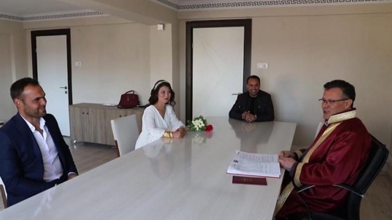Belediye Nikah Salonunda kıyılan nikahta, gelin-damat ve nikah şahitleri, aralıklarla oturdukları masada imzalarını atarak, tokalaşmadan törenden ayrıldı.
