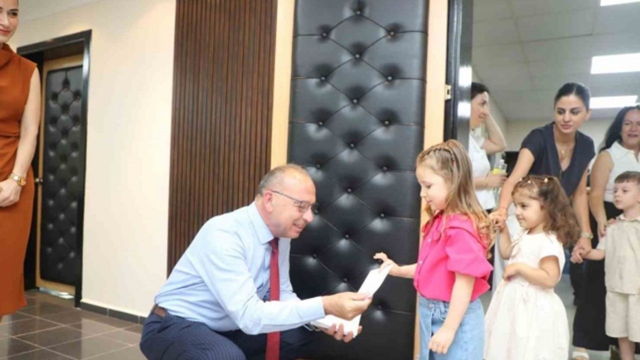 Minik öğrencilerden Başkan Çetin Akın’a bayram ziyareti