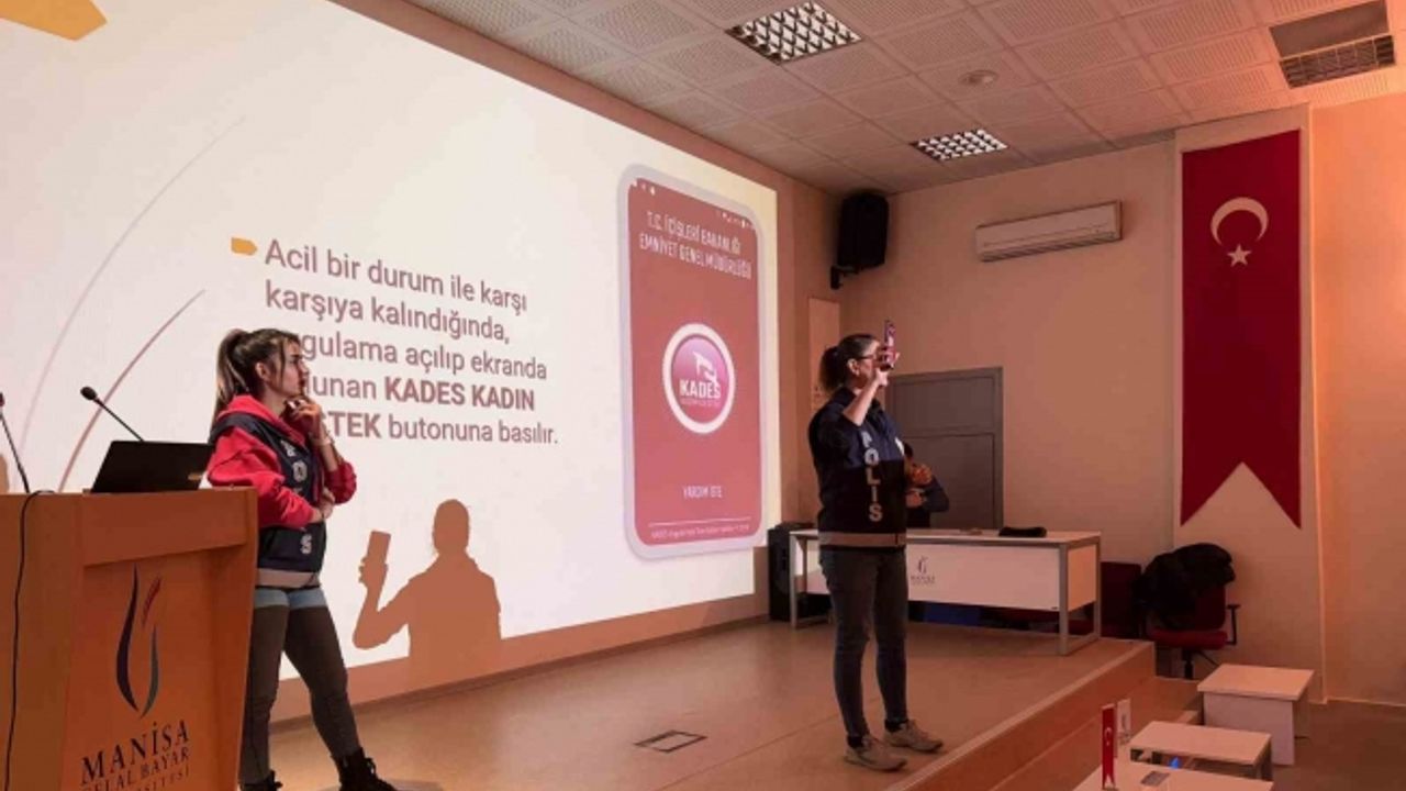 Manisa’nın Turgutlu ilçesinde İlçe Emniyet Müdürlüğü Aile İçi ve Kadına Karşı Şiddetle Mücadele Büro Amirliği tarafından düzenlenen seminerde kadına yönelik şiddetle mücadele, KADES (Kadın Destek Uygulaması) ve “Kadına El Kalkamaz” gibi konularda bilgiler verildi.