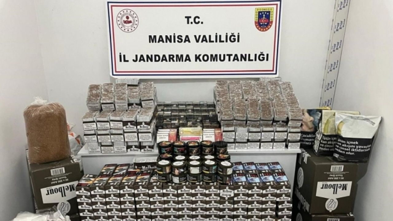 Manisa İl Jandarma Komutanlığı KOM Şube Müdürlüğünce yapılan çalışmalar neticesinde Yunusemre ilçesinde KOM Şube Müdürlüğü ve Yunusemre İlçe Jandarma Komutanlığı ekiplerince E.H. (41/E) ve E.H. (42/K) isimli şahısların evinde ve M.A. (34/E) isimli şahsın işyerinde yapılan aramada; 288 bin 760 adet içi tütün doldurulmuş makaron sigara, 22 bin 400 adet boş makaron, 19 kilogram açık sarmalık kıyılmış tütün, 196 bin 450 kilitli poşet, 55 kilogram nargile tütünü ele geçirildi.
