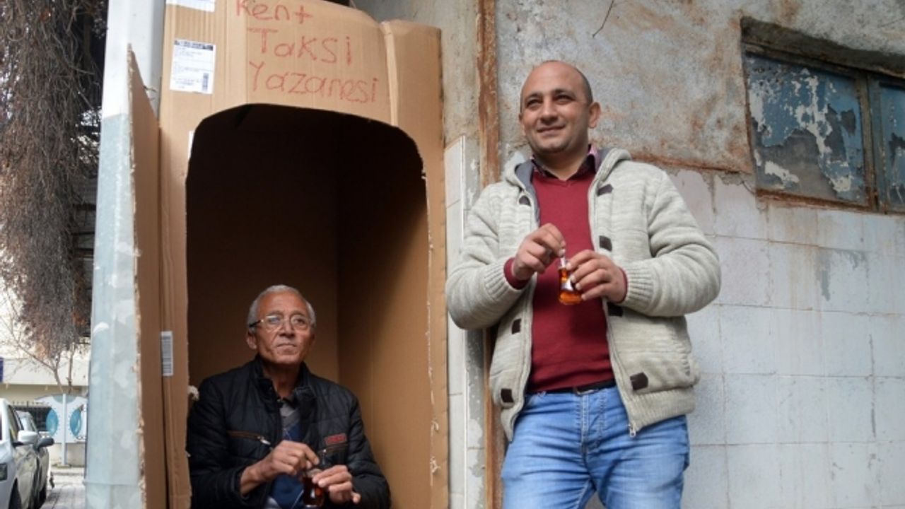 Manisa’nın Turgutlu ilçesinde kulübesi bulunmayan bir taksi durağının esnafı, seslerini duyurabilmek için ilginç bir yola başvurdu. Taksiciler buzdolabı kutusundan kendilerine kulübe yapıp bir nebze de olsa ısınmaya çalışarak kulübe taleplerini duyurmaya çalıştı. Turgutlu Belediyesi ise taksi durağının kulübe için istediği alanların uygun olmadığını, daha önce taksi durağı esnafı için gösterdikleri yerin ise esnaf tarafından beğenilmediğini açıkladı.