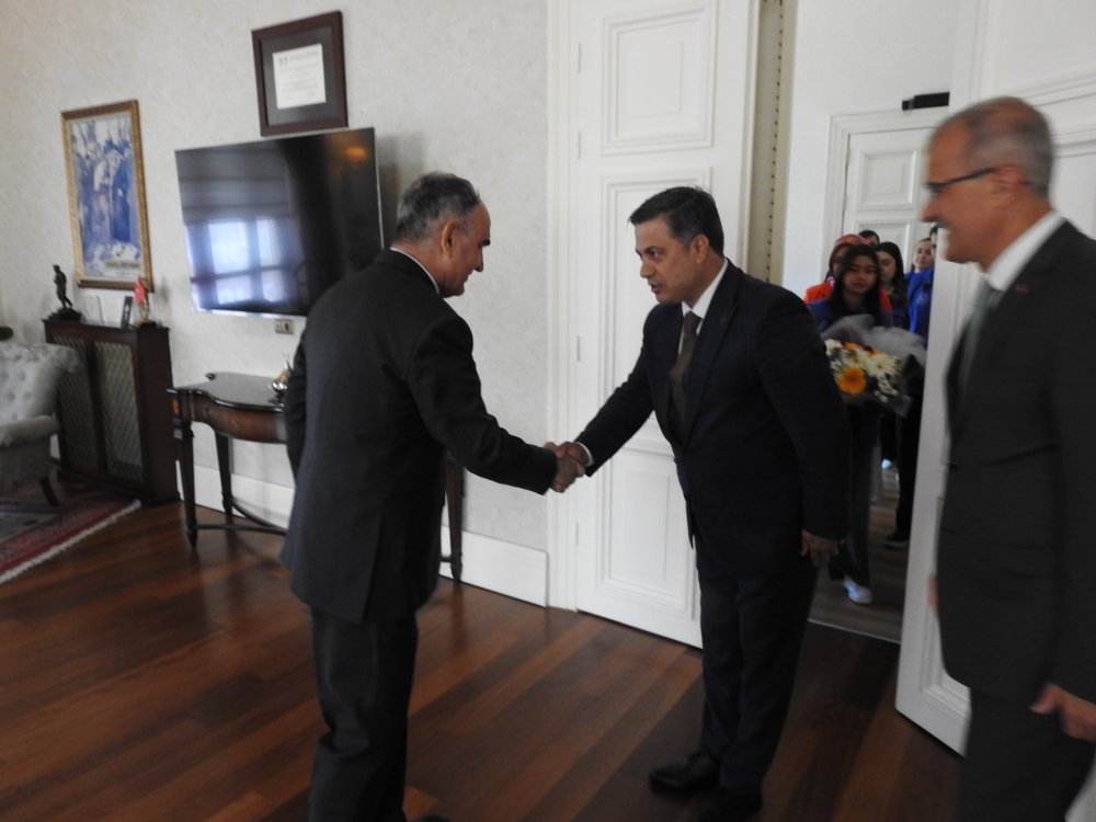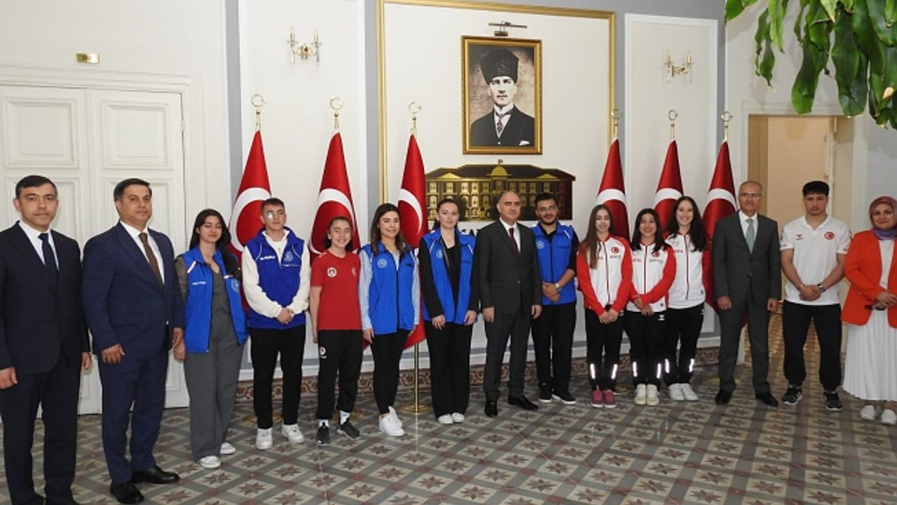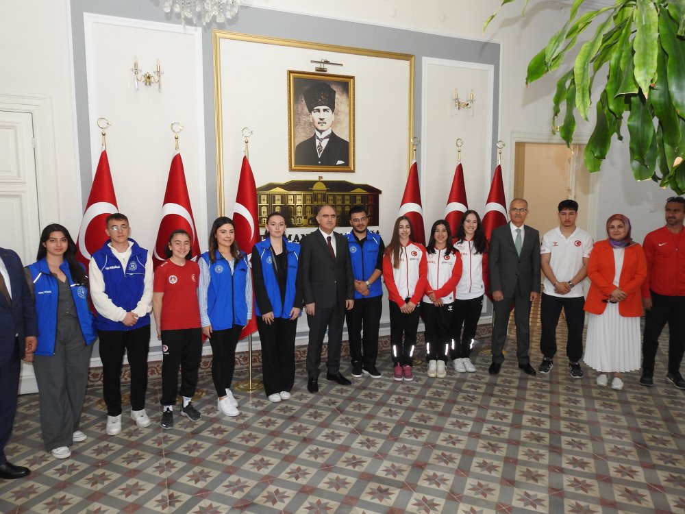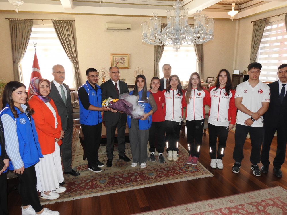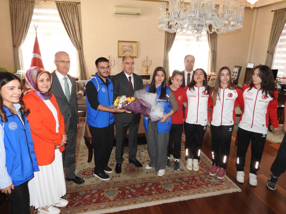 Gençlik Haftası etkinlikleri kapsamında açılış töreni ardından Gençlik ve Spor İl Müdürü Yunus Öztürk, beraberinde gönüllü gençler ve Uluslararası müsabakalara katılan Cimnastik, Karate ve Judo sporcuları ile Manisa Valisi Vahdettin Özkan'ı makamında ziyaret ettiler.