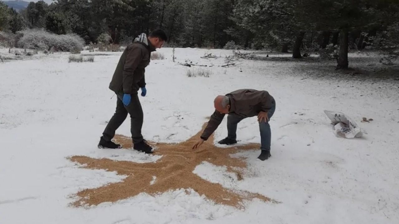 Manisa’nın Turgutlu ilçesinin yüksek kesimlerinde etkili olan kar yağışı sonrası yaban hayatının olumsuz etkilenmemesi için yemleme çalışması yapıldı.