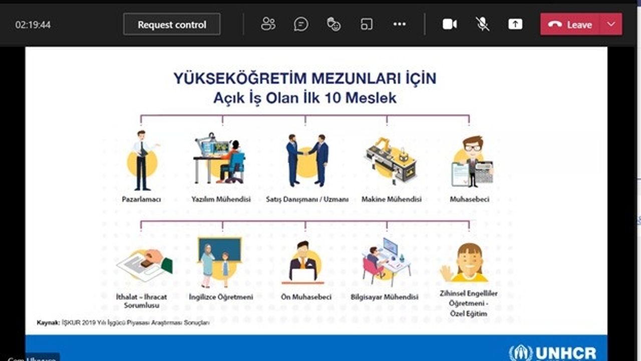 Yunusemre Belediyesi, Birleşmiş Milletler Mülteciler Yüksek Komiserliği (UNHCR) İzmir Ofisi, Türkiye’de eğitim gören yabancı uyruklu öğrencilerin üniversite öğrencileri arasındaki iletişimi güçlendirmek, bilgi alışverişini sağlamak, Türk ve yabancı uyruklu öğrencilerin uyumunu arttırmak için çevrimiçi rehberlik toplantısı düzenlendi. Toplantıya Manisa Celal Bayar Üniversitesi Sosyal Hizmet Bölümü Öğretim Üyesi Rana Dayıoğlu Oyman ile bölüm öğrencileri de katılırken; toplantıda Yüksek Öğretim Sınavı’na hazırlık ve başvuru süreçleri, yabancı öğrenciler için burs programları, üniversiteye kayıt süreçleri, harç ücretleri, kariyer tavsiyeleri, meslekler hakkında bilgilendirme, yabancı öğrenciler için iş imkânları konuları UNHCR Ankara ofisinden Eğitim ve İstihdam biriminden katılan uzmanlar eşliğinde ele alındı.