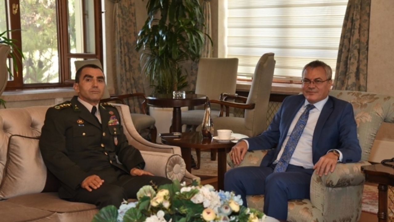 Göreve Başlayan 1. Komando Er Eğitim Tugay Komutanı Sebahattin Kalkan, ilk ziyaretini Manisa Valisi Ahmet Deniz’e gerçekleştirdi.