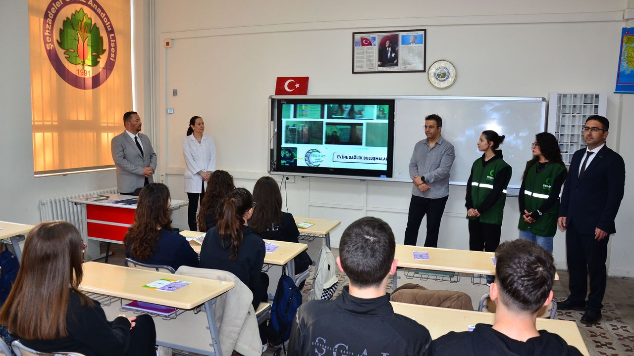 Proje kapsamında Şehzadeler ilçesindeki Gediz Anadolu Lisesini ziyaret eden Yeşilay Manisa Şube Başkanı Barış Kamiloğlu ve Yeşilay Gençlik Anadolu ilk ders öğretmeni Esin Türkoğlu, sınıfları ziyaret ederek öğrencilerle bir araya geldi.