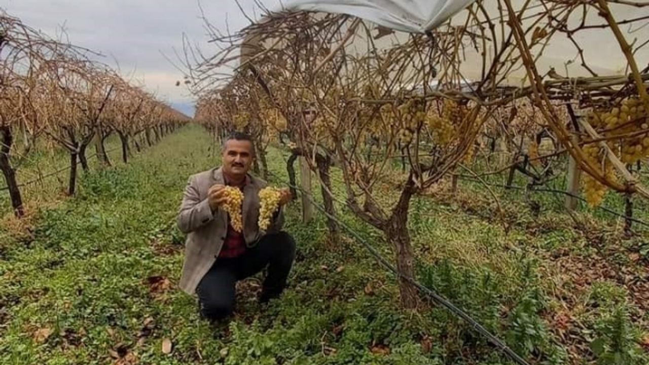 Yaz meyvesi olan üzümler Aralık ayının bitmesine sayılı günler kala örtü altında hala dallarında tazeliğini korumaya devam ediyor. Örtü altında bekletilen üzümler yılbaşı sofralarını hem tat hem renk katacak.