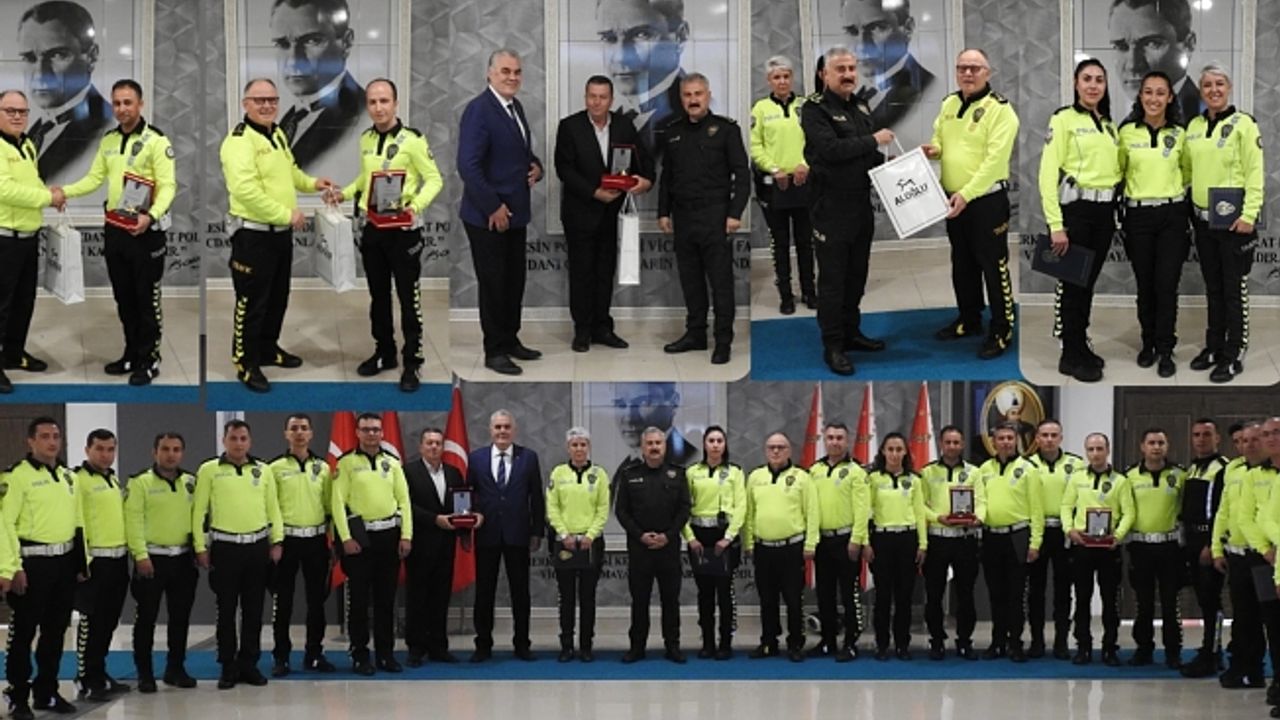 Yılın en başarılı Trafik polisleri Muhammet İnce ve Enes Genç'e plaketleri ile diğer başarılı polislere başarı belgeleri düzenlenen törenle Emniyet Müdürü Fahri Aktaş ve Müdür Yardımcıları tarafından takdim edildi.