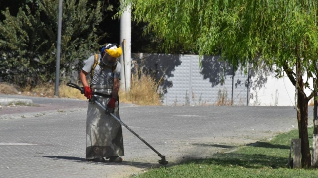 Yunusemre Belediyesi ekipleri, Muradiye Mahallesi Cumhuriyet Caddesi üzerindeki yeşil alanlarda çim biçme ve bakım çalışması yaptı.