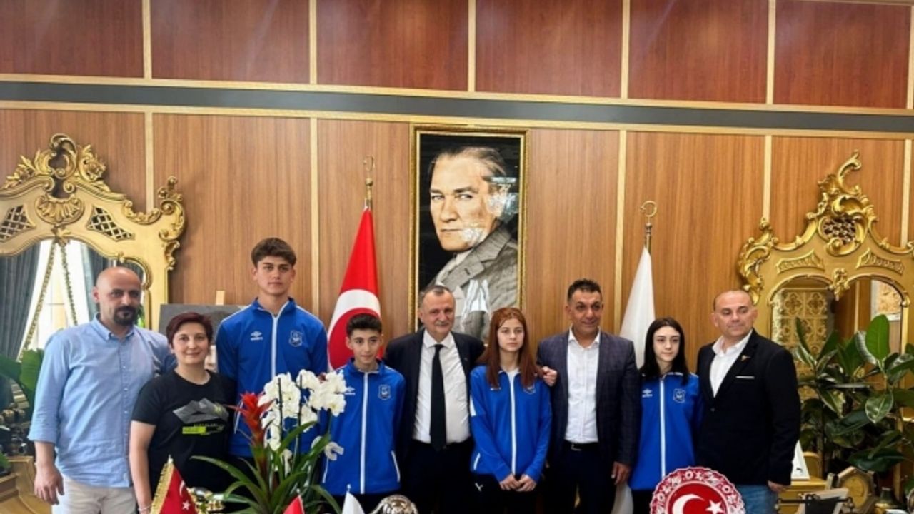 Yunusemre Belediyespor’un taekwondocuları, 24 - 26 Mayıs tarihlerinde Ankara’da yapılacak Multi Avrupa Oyunları öncesinde Yunusemre Belediye Başkanı Semih Balaban’ı makamında ziyaret etti. Sporcularla gurur duyduklarını belirten Belediye Başkanı Semih Balaban, oyunlara katılacak tüm ekibe başarılar diledi. Ziyarette konuşan Taekwondo Antrenörü Serap Aydeniz ise verilen desteğe layık olmaya çalıştıklarını kaydederek, Ankara’dan başarıyla dönmek için tüm gayreti göstereceklerini söyledi. Müsabakalarda Selvinaz Küçükcankurtaran, Gülcan Kinali, Alperen Aktaş ve Umut Furkan Akdağ madalya için ter dökecek. Oyunlar sonunda gençler kategorisinde ilk dörde giren sporcular ile yıldızlar kategorisinde ilk ikiye giren sporcular, bu yıl yapılacak Avrupa Şampiyonası’na direkt katılma hakkını kazanacak. Ziyarete Kulüp Başkanı Bülent Kanik, Türkiye Taekwondo Federasyonu Yönetim Kurulu Üyesi ve Manisa İl Temsilcisi Gökay Budak, Taekwondo Federasyonu Teknik Kurul Üyesi Süleyman Başar da eşlik etti.